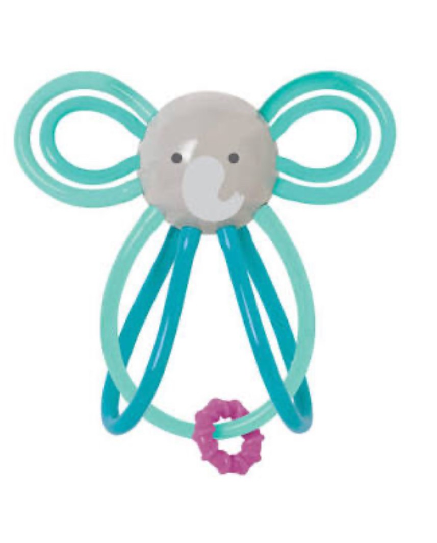 The Zoo Winkels Elephant features the same colorful, chewable, bendable loops as the original, which make it easy for infants to grasp and explore. The appeal of the Winkel teething toy spans and enhances developmental stages including grasping, tracking, mouthing, and throwing. A soft rattle makes it fun to shake, too. Place the Winkel Elephant in the fridge to cool, once chilled offer it up to baby as a cool and soothing teether. Oppenheim Toy Portfolio Gold Seal Award